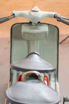 The scooter retains its original dual seats and shows beautifully preserved paintwork and trim. This is a rare opportunity to acquire a Lambretta LD 125 that combines mechanical integrity, original charm, and a thorough documented history. A true gem for vintage scooter enthusiasts and collectors.