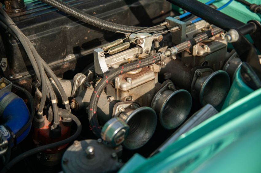 ‘MHO461F’ has undergone a truly thorough mechanical transformation. The 2.1-litre, four cylinder engine features a CTM full race specification head, GTS4 Kent cam, Weber 48S carburettors, a four branch manifold and a full 2.25” stainless steel exhaust system. A Bestek fully mapped ignition is also present. A 205 block with 92.5mm bore, Wossner forged pistons with valve cut outs, an ultra-light turbo sport flywheel, Helix clutch, and HP oil pump. The full loom has been replaced and a cutoff fuse box fitted. A Type 9, five speed close ratio straight cut gearbox with quick shift gear lever is fitted. This is coupled to a JW Engineering prop shaft, Blackline 18-tooth differential, Squires 18-tooth shafts, a shortened axle and Milton braced adjustable arms. Capri 2.8 legs are employed as is a 2.25” coil over conversion with full adjustment top mounts and a retro Ford rack and pinion steering system. Vented discs are present all round, working with M16 callipers. Quite the package!