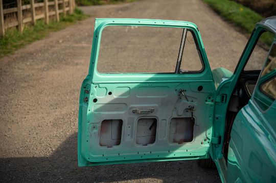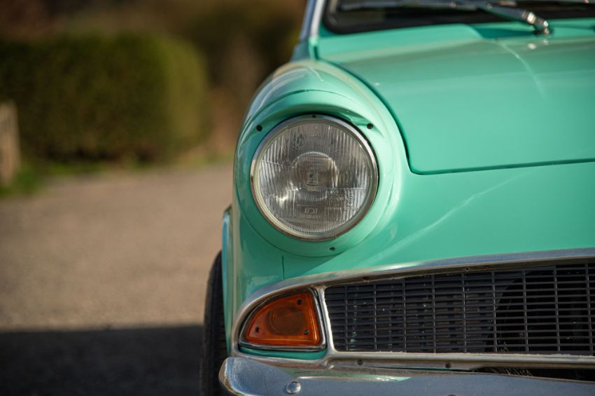 The exterior presentation of ‘MHO461F’ is dominated by that striking Mint Green and White livery and the deep, banded steel wheels with Ford Anglia chromed hubcaps. The vendor confirms that the interior requires a little tidying in the shape of door cards and a headlining. The vendor rates the paintwork and bodywork as “good” and the interior as “average.”