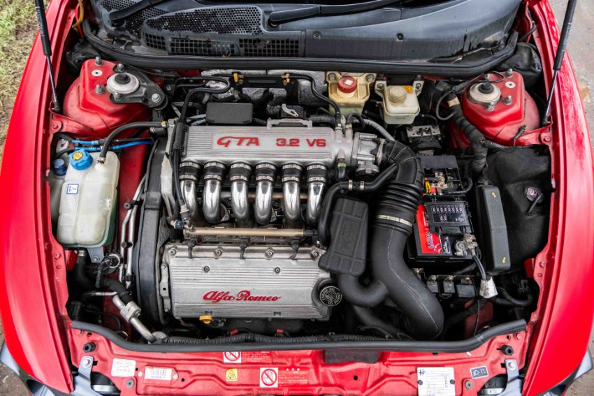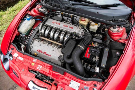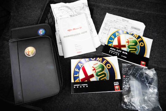 The car sits particularly well thanks to a number of tasteful carbon additions, including carbon mirrors and a rear spoiler, giving it an aggressive and contemporary look while still retaining the unmistakable Alfa Romeo character. Inside, the cabin presents well and continues the sporting theme, while the engine bay is clean and visually impressive, highlighted by the iconic GTA 3.2 V6 intake layout. It is also accompanied by an excellent selection of manuals, wallet and paperwork, all shown within the images.